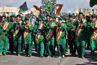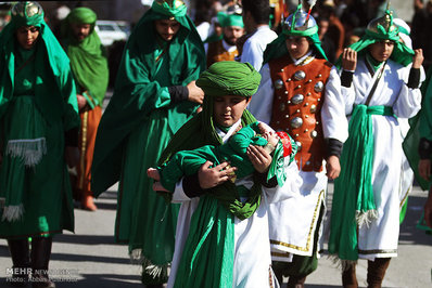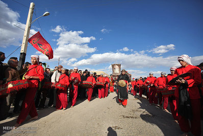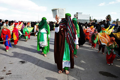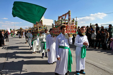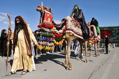 ورود کاروان نمادین امام حسین (ع) در روز هشتم محرم به کربلا صبح امروز یکشنبه در خمینی شهر اصفهان برگزار شد.
