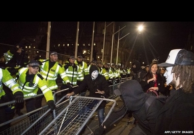 صراط: گروهی به نام «ناشناسها» که با نقاب بر چهره راهپیمایی میلیونی را ترتیب دادند مقابل ساختمان پارلمان انگلیس و شبکه خبری بی.بی.سی تجمع کرده و بعضی خیابانهای شهر لندن را بستند که با مقابله نیروهای ضد شورش پلیس این کشور مواجه شدند.