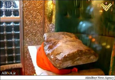 سنگی که سر مبارک حضرت امام حسین(ع) بر روی آن قرار داده شده بود در داخل یک ضریح قرار داده شده است.