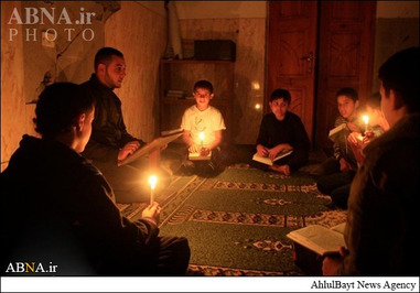قطع برق غزه که در اثر تجاوز رژیم صهیونیستی صورت گرفت نیز نتوانسته این نوجوانان مشتاق به حفظ قرآن را بازدارد و آنان با استفاده از شمع محفل قرآنی خود را برگزار میکنند.