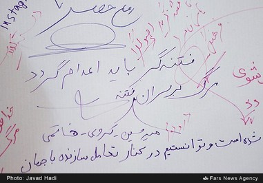 بیستمین نمایشگاه بینالمللی مطبوعات و خبرگزاریها در مصلای تهران در حال برگزاری است.دستنوشتههای مردم روی پوستر روحانی را ملاحظه می کنید.