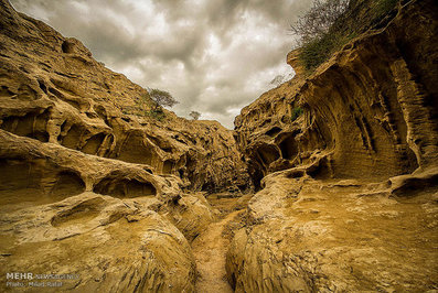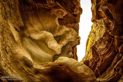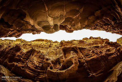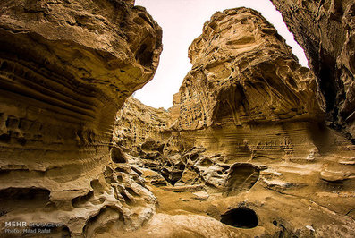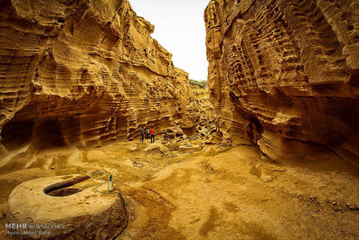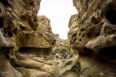 تنگه شگفت انگيز چاهکو در روستاي چاهوي شرقي جزيره قشم، با حفره ها و دالان ها و اشکال اعجاب آور در ديواره هاي خود بيننده را مبهوت مي کند.