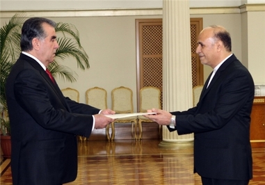 در مراسم رسمی که قبل از ظهر امروز در کاخ ریاست جمهوری موسوم به «ملت» برگزار شد، «حجتالله فغانی» سفیر جدید ایران در تاجیکستان استوارنامه خود را به «اماعلی رحمان» رئیس جمهور تاجیکستان تسلیم کرد.