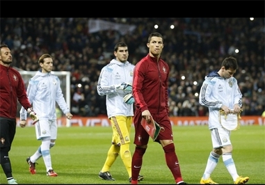 تیم ملی آرژانتین و پرتغال در دیداری دوستانه در ورزشگاه اولدترافورد به مصاف هم رفتند که در مراسم ابتدای بازی مسی و رونالدو دو چهره برتر فوتبال جهان برخورد سردی با هم داشتند که از چشم تیز بین دوربینها پنهان نماند.