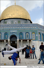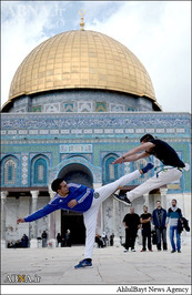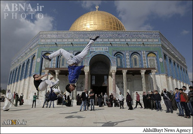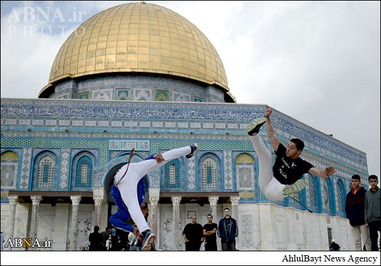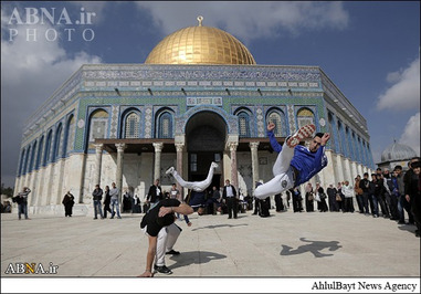 در حاشیه برگزاری باشکوه نماز جمعه در مسجد الاقصی شماری از جوانان فلسطینی صحنههایی از یک ورزش مهیج را به نمایش گذاشتند.