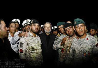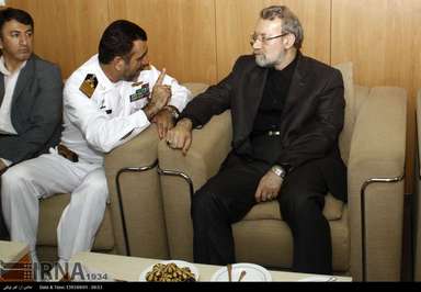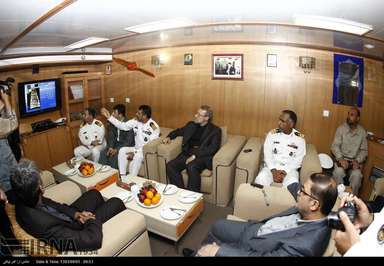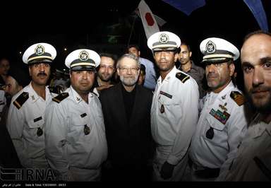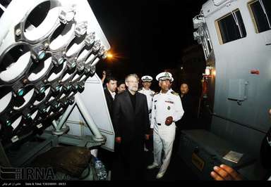 علی لاریجانی رییس مجلس شورای اسلامی عصر جمعه با حضور در ناوشکن های ایرانی مستقر در خلیج عدن با نیروهای ارتش مستقر در ناو دیدار و از بخش های مختلف آن بازدید کرد.
