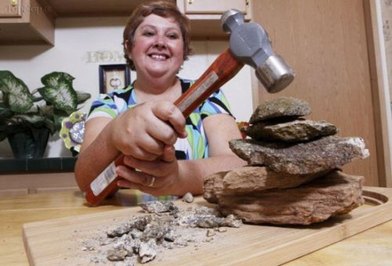 این زن 45 ساله سنگ میخورد. البته نه در حالت عادی . ترسا ویدنر ، در 20 سال گذشته هر بار که او استرس یا افسردگی گرفته است خود را با خوردن سنگ آرام میکرده است. او از کلکسیون سنگ های مورد علاقه اش یکی را انتخاب کرده و با خورد کردن آن شروع به میل کردن میکند. پیش بینی میشود او در این مدت بیش از 1500 کیلو گرم سنگ خورده باشد.