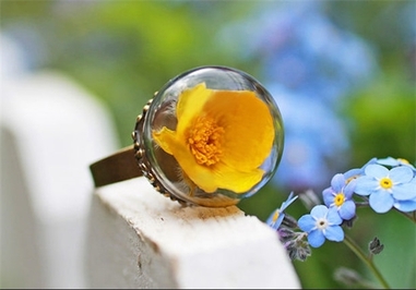 جواهر فروشی خلاق، جواهراتی طراحی کرده که در تمام آنها از گیاهان و گلبرگها استفاده کرده است. «رابی روبین» طلا و جواهرساز، نمونههایی از گیاهان مانند گلبرگهای گل، قاصدک یا دانه قاصدک را در ظروف شیشهای کوچک قرار داده است. این مجموعه گرانبها از قبیل انگشتر، گردنبند و گوشواره به شکل یک ظرف شیشهای کوچک ساخته شدهاند.