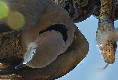تصاویر/ لحظه شکار کبوتر توسط مار پیتون