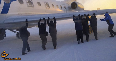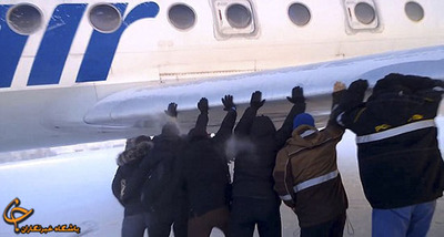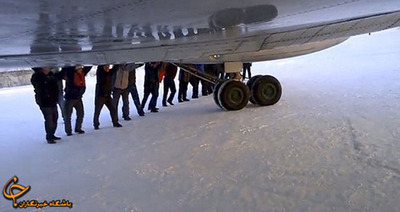 عکس/ مسافران هواپیمای روسی را هل دادند!