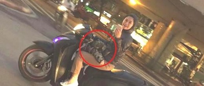 خانم راننده، کلاه ایمنی به سر ندارد، با یک دست در حال رانندگی است و نقطه اوج ماجرا این است که با تمامی این اوصاف، خانم راننده نوزاد در حال خوابش را نیز روی موتور در حال رانندگی با دو پایش نگه داشته است.