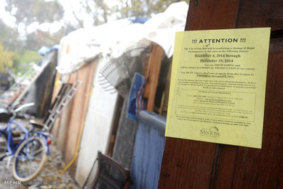پلیس آمریکا به بی خانمان های ساکن یکی از مناطق حاشیه ای «سیلیکون ولی» در ایالت کالیفرنیا 3 روز فرصت داده است تا این منطقه را ترک کنند، در غیر اینصورت بازداشت خواهند شد.