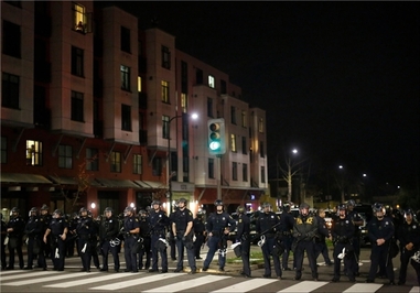 هرچند رسانههای آمریکایی از جمله «آسوشیتدپرس» (اینجا) و «سیانان» با انتشار اخبار دستچین شده تلاش کردهاند تا معترضان را به عنوان خرابکار جلوه دهنده، اما تصاویری که در رسانههای بیطرف منتشر شده، نشان میدهد نیروهای پلیس با حمله به تجمع مسالمتآمیز معترضان، با باتوم، گاز اشکآور و نارنجکهای دودزا دست به سرکوب اعتراضات زدهاند.