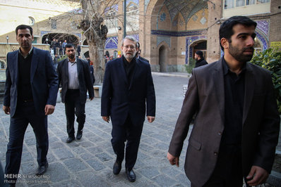 مراسم دومین سالگرد آیت الله آقا مجتبی تهرانی صبح امروز پنجشنبه با حضور علی لاریجانی رئیس مجلس شورای اسلامی در مسجد جامع بازار تهران برگزار شد.