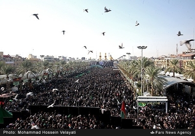 تجمعکنندگان که هر لحظه بر تعداد آنان افزوده میشد، با شیفتگی و دلدادگی هرچه تمامتر به سرور و سالار شهیدان، به یاد از جان گذشتگی امام حسین(ع) و یارانش در کربلا، بر سر و سینه کوبان به عزاداری پرداختند.