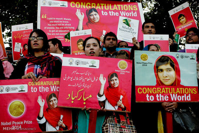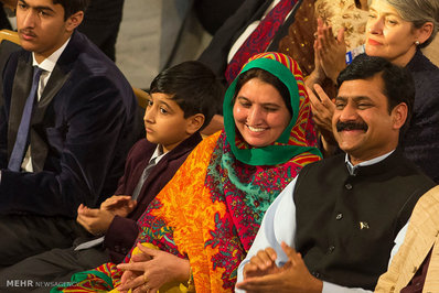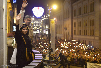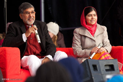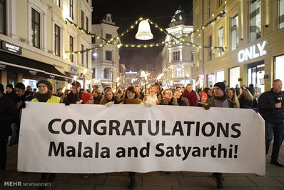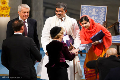 جایزه صلح نوبل، روز چهارشنبه در مراسمی در آکادمی جایزه صلح نوبل در شهر اسلوی نروژ به طور مشترک به ملاله یوسف زی از پاکستان و کایلاش ساتیارثی از هند اهدا شد.