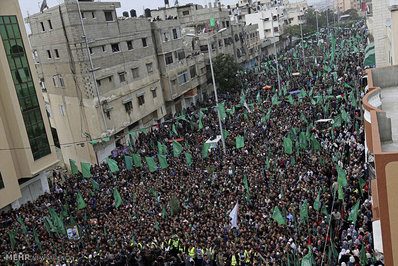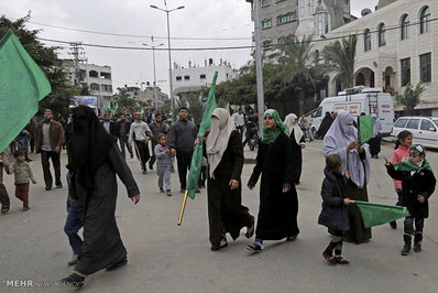 ده ها هزار فلسطینی در حالی که پرچم های سبز رنگ به دست داشتند، بیست و هفتمین سالروز تشکیل جنبش اسلامی حماس را در غزه جشن گرفتند.