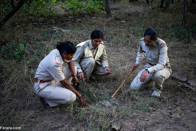 Anindito Mukherjeeعکاس رویترز یک روز را با این زنان محیط بان سپری کرده و از آنها عکاسی کرده است. این زنان با چوب و تفنگهای مخصوص جنگلبانی در همه فضای پارک در حال نگهبانی هستند. آنها با پای پیاده یا موتور گشت میزنند و در کارهای جانبی پارک نیز به کارگران کمک میکنند. در ضمن، به کودکان و دیگر بازدیدکنندهها نیز اطلاعات و آموزشهای لازم را میدهند.