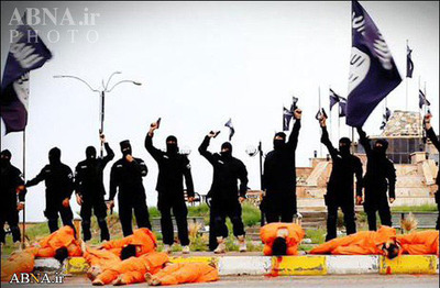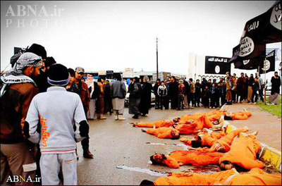 13نفر از عشایر سنی در حالی که لباس نارنجیرنگ گروگانهای خارجی را به تن داشتند، توسط تروریستهای داعش اعدام شدند. گروه تروریستی داعش اعلام کرده که افراد اعدام شده از اعضای گروه «جنبش یکهسواران العلم» (فرسان العلم) بودهاند. عملیات کشتار 13 نفر از عشایر ساعت 15 عصر روز گذشته (دوشنبه) به وقت گرینویچ در میدانی در شش کیلومتری شرق شهر تکریت مرکز استان صلاح الدین توسط تروریستهای داعش صورت گرفته است.