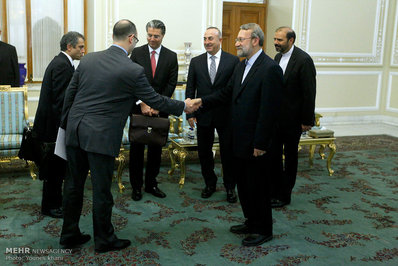 مولودچاوش اوغلو وزیر امور خارجه ترکیه عصر امروز چهارشنبه با علی لاریجانی رئیس مجلس شورای اسلامی دیدار و گفتگو کرد.