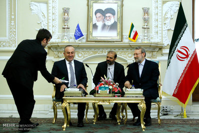 تصاویر/ دیدار وزیرخارجه ترکیه با لاریجانی