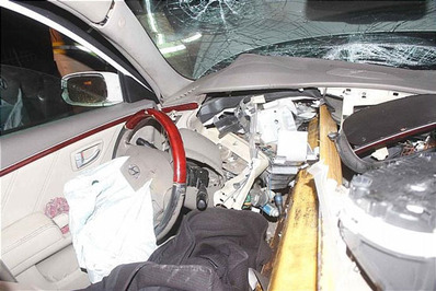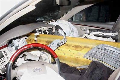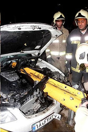 در اثر تصادف هیوندا با حفاظ فلزی وسط بلوار، یکی از حفاظ ها از قسمت جلو، وارد موتور و اتاقک خودرو شد و پس از عبور از کنار راننده در قسمت عقب هیوندا متوقف ماند. آتشنشانان با قطع برق باطری و گشودن در هیوندای آسیب دیده، راننده را که هیچ صدمه ای ندیده بود و فقط شوكه شده بود، از داخل اتاقک این وسیله نقلیه خارج کرده و تحویل امدادگران اورژانس دادند.آتش نشانان با ابزارهای مخصوص گاردریل را پس از انجام برشکاری از داخل هیوندا بیرون آوردند و با حضور جرثقیل راهنمایی و رانندگی خودروی آسیب دیده به پارکینگ منتقل شد.