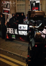جمعی از شیعیان و فعالان اجتماعی مقیم انگلیس شب گذشته با تجمع در مقابل سفارت رژیم سعودی در لندن با شیخ نمر باقر النمر روحانی شیعی عربستانی اعلام همبستگی کردند.