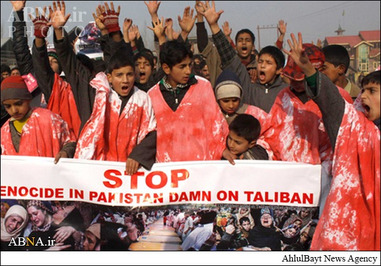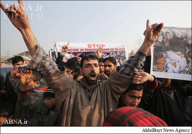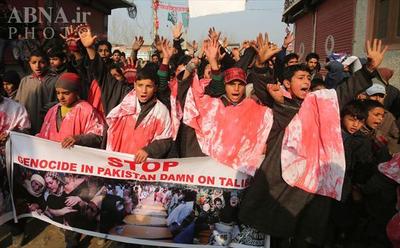 دهها تن از دانش‌آموزان شیعه منطقه کشمیر تحت سلطه هند روز شنبه در اعتراض به حمله تروریست‌های طالبان به مدرسه‌ای در پیشاور پاکستان تظاهرات کردند. در این تظاهرات دانش‌آموزان در همبستگی با دانش‌آموزان کشته شده با پوشیدن کفن‌هایی آغشته به خون ضمن محکوم کردن حمله مرگبار تکفیری‌های طالبان به مدرسه پیشاور که به کشته شدن ۱۳۲ دانش آموز و ۹ نفر از کارد آموزشی مدرسه منجر شد خشم و انزجار خود را از آنان ابراز کردند.