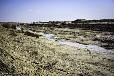 تصاویر/ خشکسالی به تالاب کمجان رسید