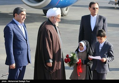 تصاویر/ استقبال از روحانی در فرودگاه بیرجند