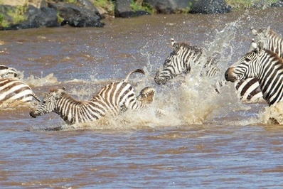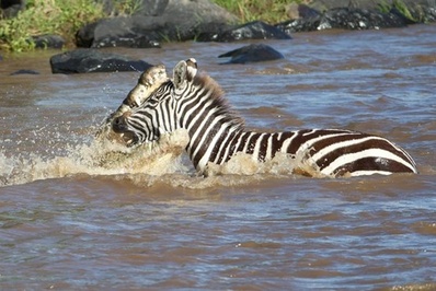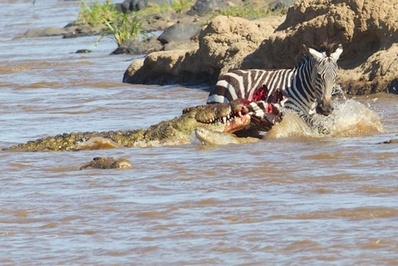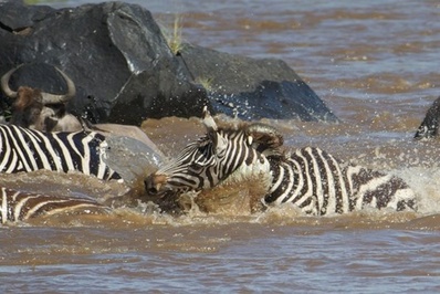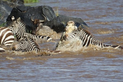 صدها هزار گورخر و بیش از 1.5 میلیون ویلدبیس ( گوزن یالدار) در فصل مهاجرت ناگزیر به عبور از موانع زیادی از جمله رودخانه مارا مشهور به رودخانه مرگ هستند. مرگی دردناک، جراحاتی مرگبار که منجر به مرگ شده و یا اقبال بلند برای سالم بیرون آمدن از آب های رودخانه مرگ. ریچارد سیمونسن عکاس حیات وحش در فصل مهاجرت گورخر ها و ویلدبیس ها به کنار رودخانه مارا در پارک حیات وحش ماسایی مارا در کنیا آمد. او هنگام عبور گله ای از گورخر ها از رودخانه مارا عکس های فوق العاده ای را با دوربینش ثبت کرد. کروکودیل های نیل که در رودخانه مارا زندگی می کنند پس از کروکودیل های دریایی و آب شور استرالیایی بزرگترین گونه این خزنده هستند. آنها هیولاهایی واقعی بوده و از ماه ها قبل در انتظار ضیافت شاهانه ای هستند که با شکار گورخر ها و ویلدبیس ها برپا می کنند.