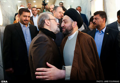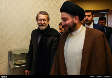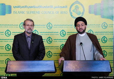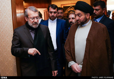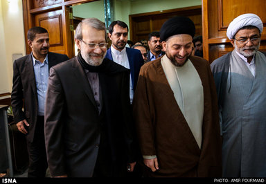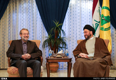 لاریجانی با عمار حکیم رییس مجلس اعلای اسلامی عراق در بغداد دیدار کرد.