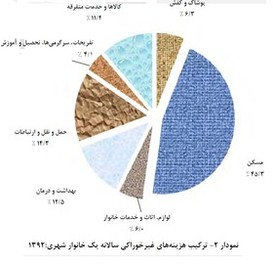 صراط: بر اساس آمار مرکز آمار ایران در سال 1392، 73.3 درصد هزینه خانوارهای شهری شامل هزینههای غیرخوارکی است و 26.7 درصد هزینه آنها هم در بخش خوراکی و دخانی صرف میشود.