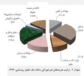 بزرگترین بخش هزینه خانوارهای روستایی هم به هزینههای غیر خوراکی اختصاص دارد و در واقع 56.7 درصد هزینه خانوارهای روستایی غیر خوراکی است که مسکن با 27.6 درصد بیشترین سهم را در هزینههای غیرخوراکی دارد. بعد از مسکن حمل و نقل و ارتباطات 19.8 درصد، بهداشت و درمان 14.8 درصد، کالاها و خدمات متفرقه 13.6 درصد، پوشاک و کفش 10.5 درصد، لوازم و اثاث خانوار هم 10.4 درصد را به خود اختصاص میدهد. اما سرگرمی و آموزش با 3.4 درصد کمترین سهم از هزینههای غیرخوراکی را دارد.