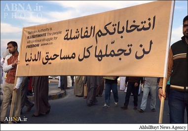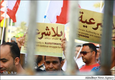 انقلابیون بحرینی با حمل پلاکاردهایی که بر روی آنها نوشته شده بود «بلا شرعیه» (غیر قانونی) اعتراض خود را به تعیین مجدد خلیفه بن سلمان عموی پادشاه بحرین به عنوان نخست وزیر نشان دادند.