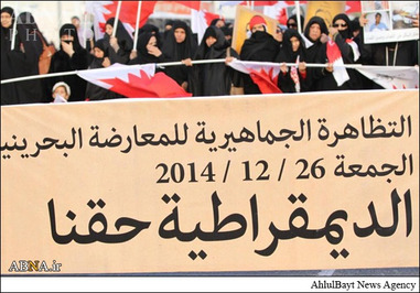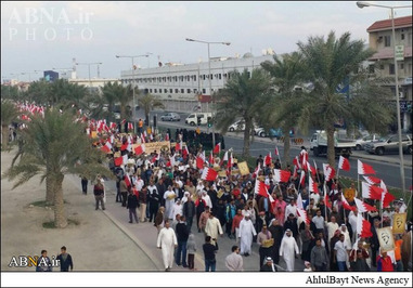 شرکت کنندگان در تظاهرات بزرگ منامه با سردادن شعار «الديمقراطية حقنا» (دموکراسی حق ماست) بر خواستههای مشروع خود تاکید کردند.
