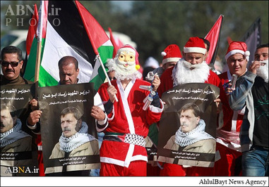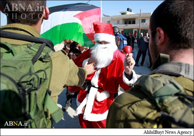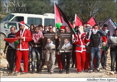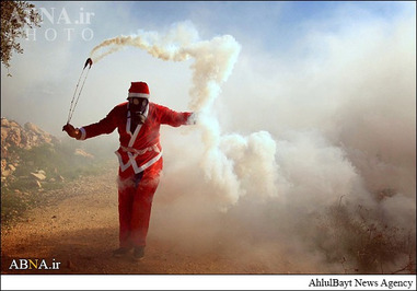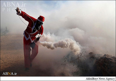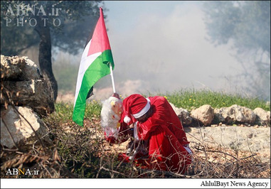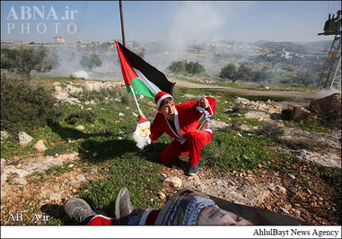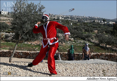 ـ گروهی از جوانان فلسطینی عصر جمعه با پوشیدن لباس بابانوئل در روستای ترمسعیا واقع در شمال رام الله و در دست گرفتن تصاویر شهید «زیاد ابوعین» وزیر مسئول پرونده شهرکهای صهیونیستی و عضو شورای انقلابی جنبش فتح در محل به شهادت رسیدن وی با نیروهای رژیم صهیونیستی درگیر شدند.