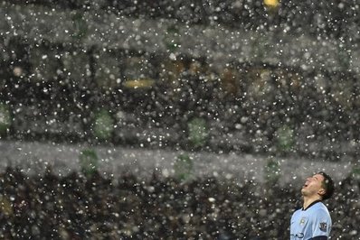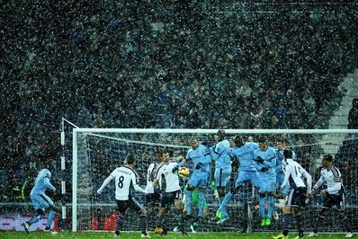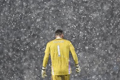 تصاویر/ فوتبال زیبا در بارش شدید برف