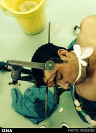این پزشک با بیان اینکه میلگرد به طول حدود یک متر از پیشانی بیمار در سمت راست وارد و از استخوان پشت سری در سمت چپ خارج شده بود گفت: دو صفحه فرضی در جمجمه وجود دارد که مغز را به دو نیمه راست و چپ و یا دو نیمه جلو و عقب تقسیم میکنند؛ جسم خارجی که هر دو این صفحات را قطع کند مشابه این بیمار شانس وی را برای زنده ماندن کاهش میدهد، خصوصآ که این جسم کاملآ آلوده هم بوده و دقیقآ از نواحی مرکزی مغز عبور کرده باشد که با مناطق حیاتی مجاورت دارد؛ تنها نکته مثبت فیکس شدن میلگرد داخل جمجمه از دو محل ورود و خروج بود که در غیر این صورت هر حرکت کوچکی در آن حین جابه جایی بیمار، آسیب وارده را شدید و شدیدتر میکرد؛ با این حال جهت جلوگیری از هر گونه جابجایی، بیمار با داروهای خواب آور آرام شد.