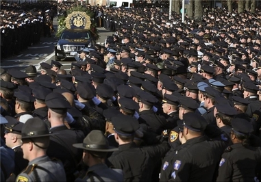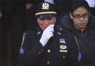 این پلیس آمریکایی آنطور که گفته میشود اخیراً مورد حمله انتقامجویانه یک سیاهپوست معترض به بدرفتاری با سیاهان قرار گرفته و کشته شده است.
