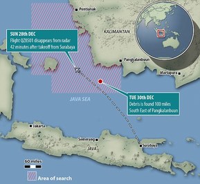 پس از پیدا شدن سه جسد و بقایایی از هواپیمای خطوط هوایی ایرآسیا در آبهای نزدیک جزیره بورنئو، گروههای نجات و کاوش، به جستجوهای خود وسعت و شدت بخشیدند.