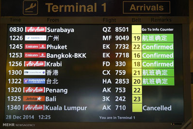 هواپیمای مالزی متعلق به شرکت ایر آسیا، حامل۱۶۲سرنشین و ازنوعA۳۲۰-۲۰۰است که روز یک شنبه7دیماه درآسمان اندونزی از مدار خارج و ناپدید شد.جسد40 نفر از مسافران هواپیمایی شرکت «ایر آسیا» مالزی کشف شده است.