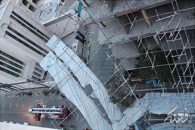 علی امینی مدیر عملیات منطقه سه آتش نشانی تهران گفت: با رسیدن به محل حادثه مشاهده شد، داربستی که بر روی نمای یک ساختمان در حال احداث بسته شده است، به صورت واژگون در آمده و هر لحظه احتمال می رود برروی رهگذران و خودروهای عبوری سقوط کند.