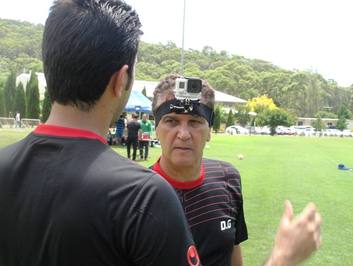 صراط: همانطور که این عکس نشان میدهد گاسپار یک دوربین ضبط تصاویر روی پیشانی خود بسته و به این طریق مشغول ضبط فیلم تمرین بازیکنان است. او و سایر اعضای کادر فنی تیم ملی مثل مهرداد خانبان با این وسیله تصاویر لازم را از تمرینات برمیدارند و در جلسات فنی آنها را مورد بازدید مجدد قرار میدهند.