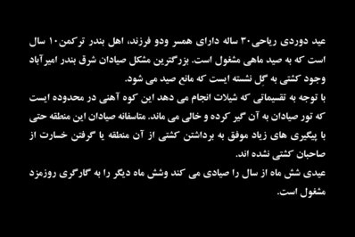 بزرگترين مشكل صيادان شرق بندر اميرآباد وجود كشتي به گِل نشسته ایست كه مانع صید می شود. با توجه به تقسیماتی که شیلات انجام می دهد این کوه آهنی در محدوده ایست که تور صیادان به آن گیر کرده وخالی می ماند.