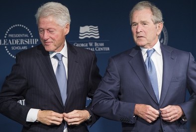 "جورج بوش" و "بیل کلینتون" روسای جمهوری سابق آمریکا هنگام ترک برنامه ای در واشنگتن - 8 سپتامبر 2014