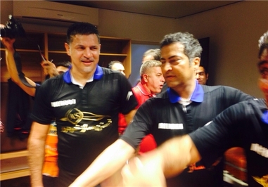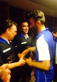 * پازوکی رئیس هیأت فوتبال کیش هم با حضور در رختکن دو تیم از حاضران در این بازی تشکر کرد و به آنها خوشامد گفت.