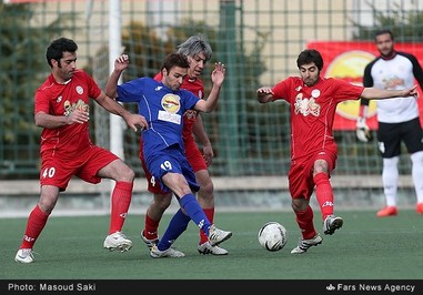 دیدار تیم فوتبال هنرمندان آبی و قرمز عصر امروز پنجشنبه در مجتمع ورزشی فرهنگی غدیر برگزار شد.