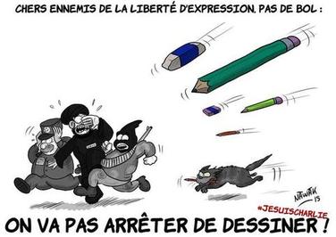 در واقع این موج از کارتونها علاوه بر آنکه با هدف حمایت از کشته شدگان روز گذشته پاریس شکل گرفت، با هدف بیان کردن این حقیقت بود که کشیدن کارتون با شلیک گلوله متوقف نمیشود،و اتفاقاً در روندی معکوس منجر به تکثر حرکتی میشود که برای توقفش به اسلحه دست برده شده و نشانههای چنین پیامی نیز به روشنی در کاریکاتورها نمایان است.