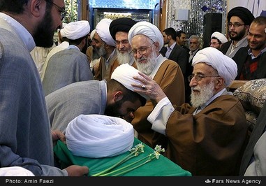 پنج شنبه شب در جشن میلاد حضرت رسول(ص) در حرم مطهر حضرت احمد بن موسی شاه چراغ (ع) مراسم آیین عمامه گذاری طلاب حوزه های علمیه شهر شیراز با حضور آیت الله احمد جنتی برگزار شد.